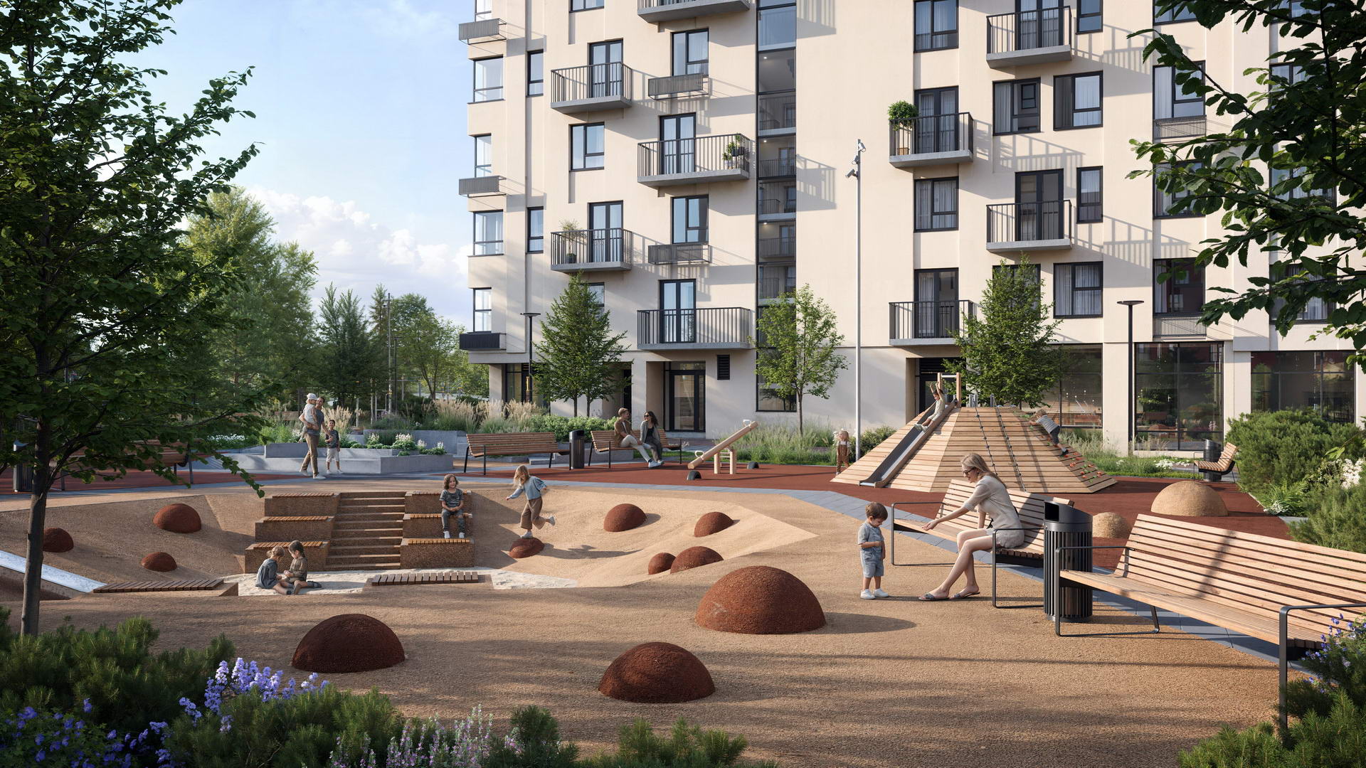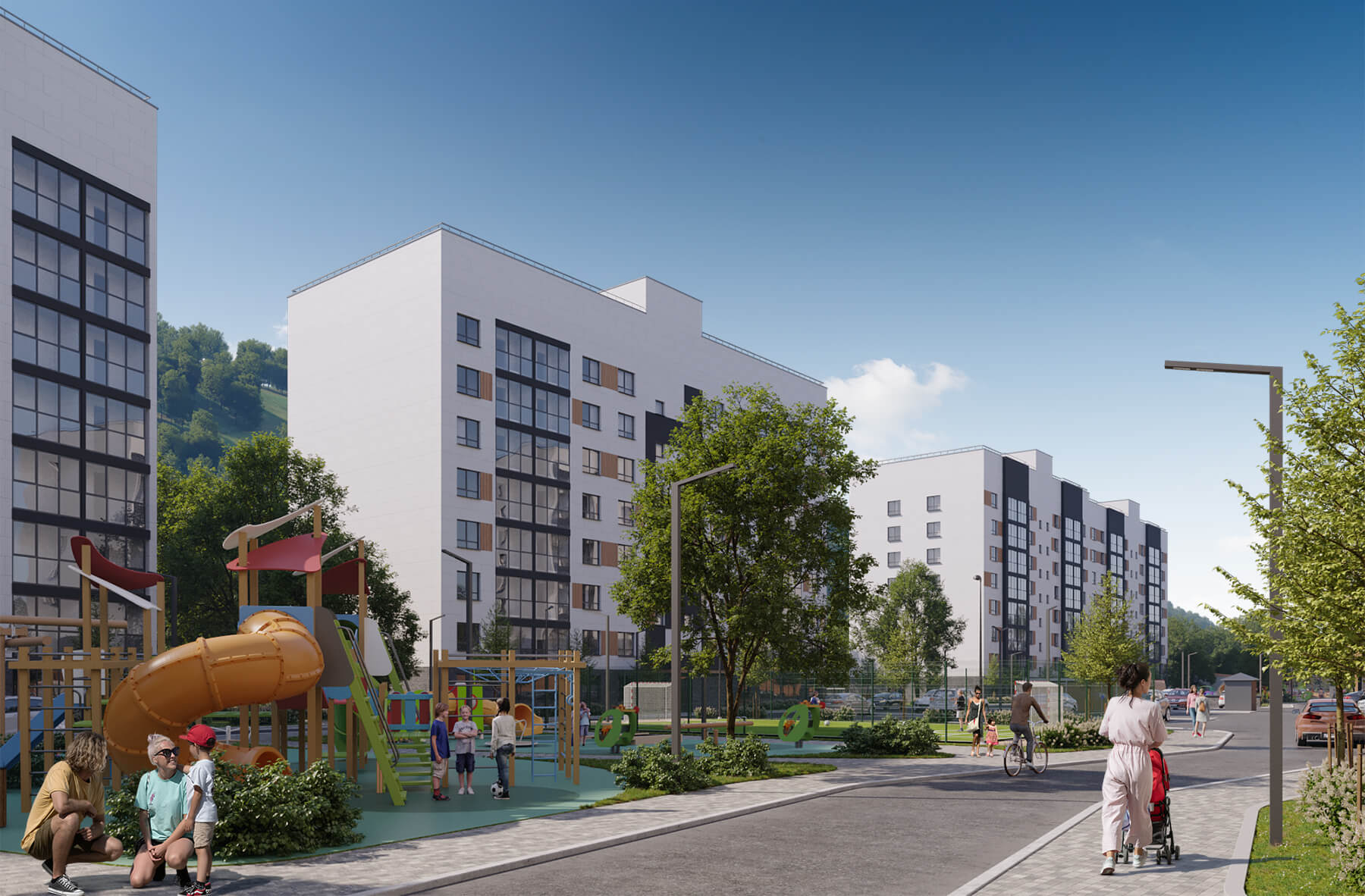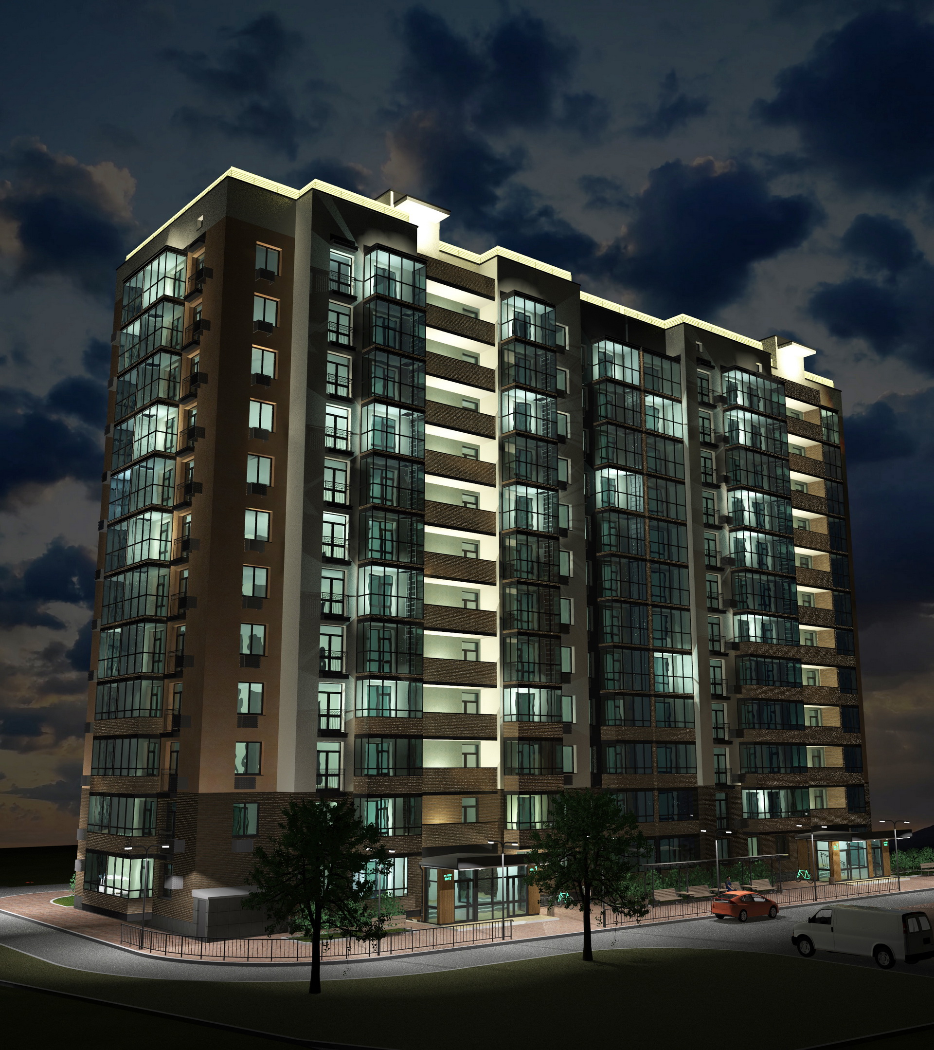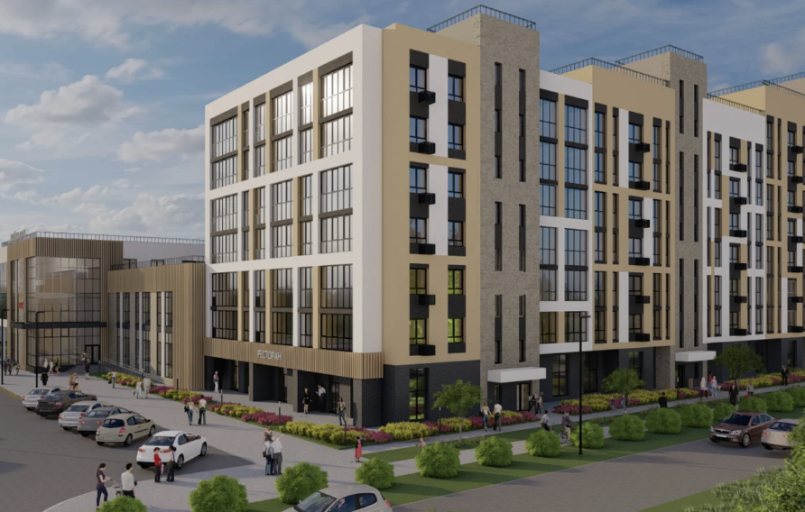 Апартаменты бизнес-класса, гостиница, торговые галереи, придорожный сервис и подземный паркинг.